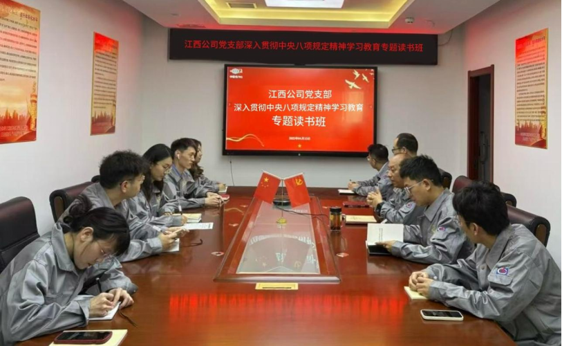 近日,江西公司黨支部舉辦深入貫徹中央八項規(guī)定精神學習教育專題讀書班,分公司領導班子成員與全體黨員齊聚一堂,采用“集中學習+研討發(fā)言”形式,掀起學習熱潮。本次讀書班突出“學思用貫通、知信行統(tǒng)一”,要求全體黨員將學習成果轉化為推動工作的實際成效。江西公司將以此次學習為契機,持續(xù)完善作風建設長效機制,通過常態(tài)化監(jiān)督檢查、制度化流程規(guī)范,著力解決形式主義、官僚主義等突出問題,為分公司高質量發(fā)展提供堅實的作風保障。