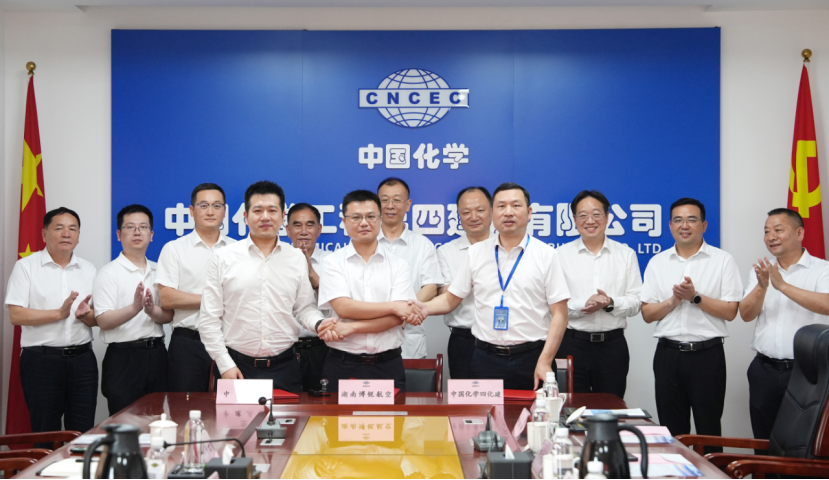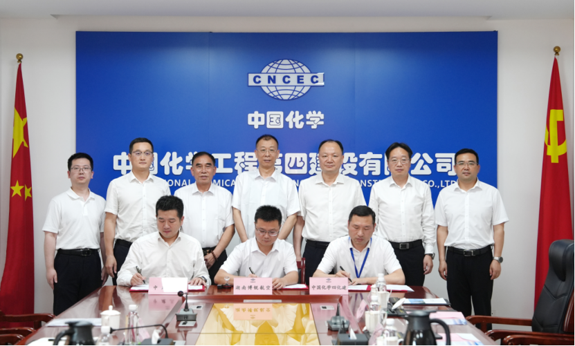 中國(guó)化學(xué)四化建、中建三局與湖南博銳航空科技集團(tuán)簽訂框架合作協(xié)議