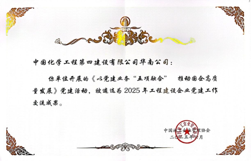 6月27日,中國(guó)施工企業(yè)管理協(xié)會(huì)2025年工程建設(shè)企業(yè)黨建工作成果交流會(huì)在京召開,會(huì)上發(fā)布2025年工程建設(shè)企業(yè)黨建工作成果推廣名單。由中國(guó)化學(xué)四化建華南公司申報(bào)的《以黨建業(yè)務(wù)“五項(xiàng)融合” 推動(dòng)國(guó)企高質(zhì)量發(fā)展》黨建項(xiàng)目案例從全國(guó)1000余項(xiàng)申報(bào)案例中脫穎而出,成功入選。這也是四化建參加中國(guó)施工企業(yè)管理協(xié)會(huì)開展的工程建設(shè)企業(yè)黨建工作典型案例征集活動(dòng)以來,連續(xù)五年榜上有名。