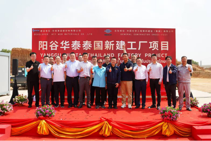 2月22日,由公司承建的首個橡膠助劑項目——陽谷華泰泰國新建工廠項目舉行開工儀式。山東陽谷華泰化工股份有限公司董事長、總經理王文博,華泰泰國新材料有限公司總經理王文一,泰國當地政府和公司國際業務部負責人出席并致辭。