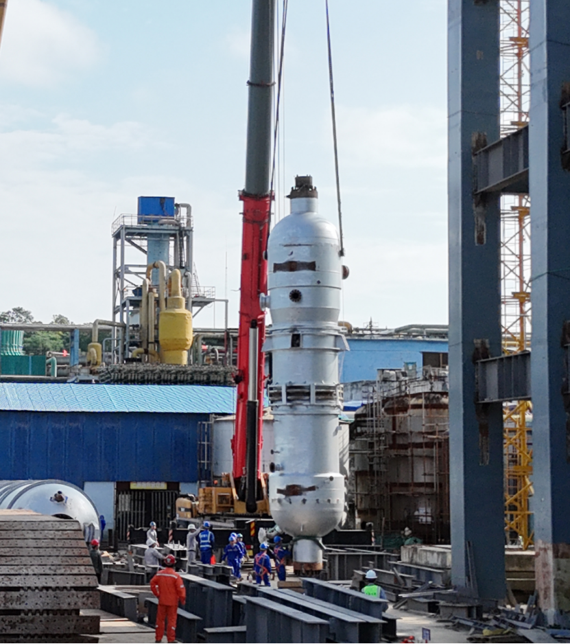近日,由中南公司承建的華強化工3#尿素裝置升級改造項目成功完成汽提塔設(shè)備安裝首吊作業(yè),標志著該項目全面進入設(shè)備安裝階段。